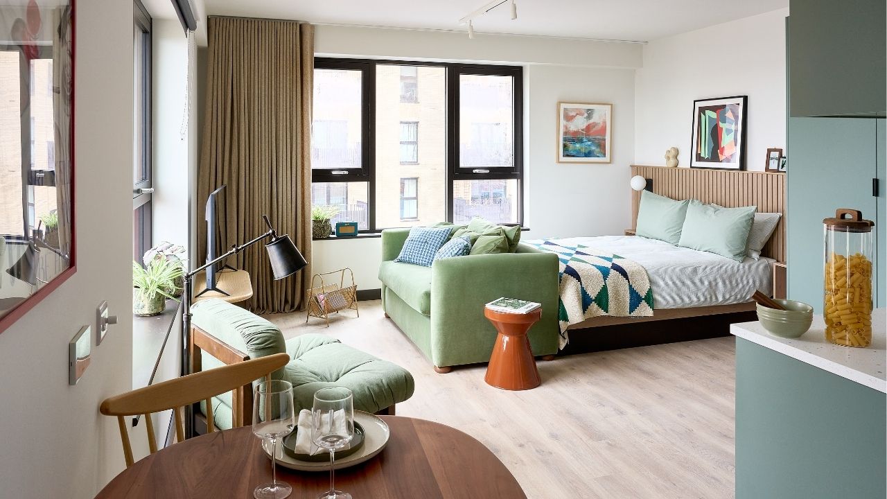 At The Altham, furnished means more than just the basics. Every studio comes ready to live in, with a double bed and pocket sprung mattress, double wardrobe, plenty of built-in storage, and a private bathroom with vanity unit.