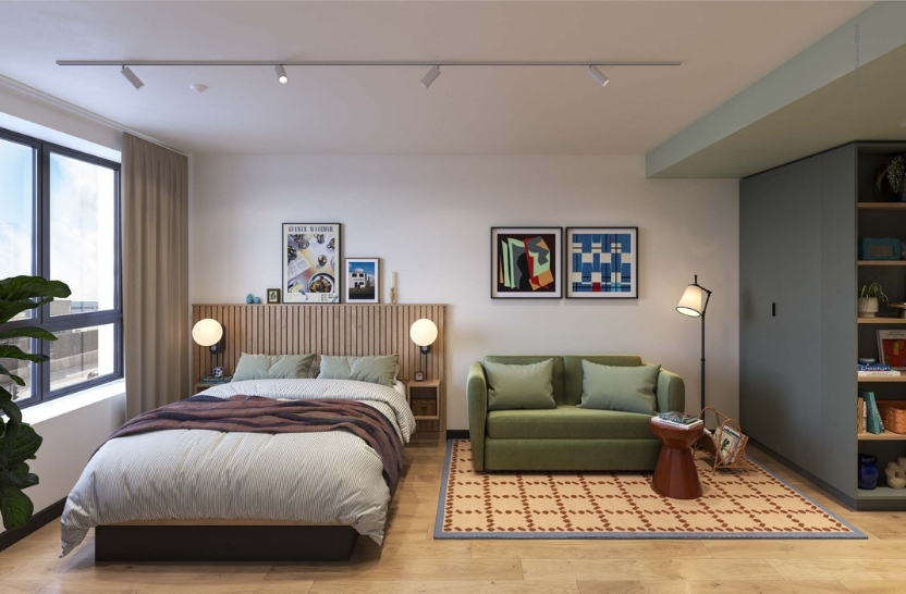 At The Altham, furnished means more than just the basics. Every studio comes ready to live in, with a double bed and pocket sprung mattress, double wardrobe, plenty of built-in storage, and a private bathroom with vanity unit.