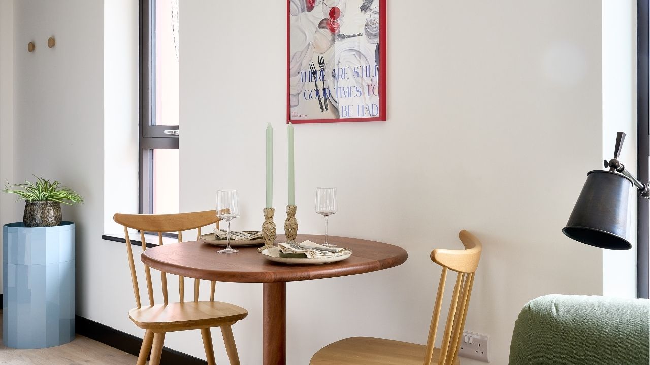 A dining table and chairs and lamps are not included as standard, these are an optional additional extra. chat to the team if you'd like to add this into your room.